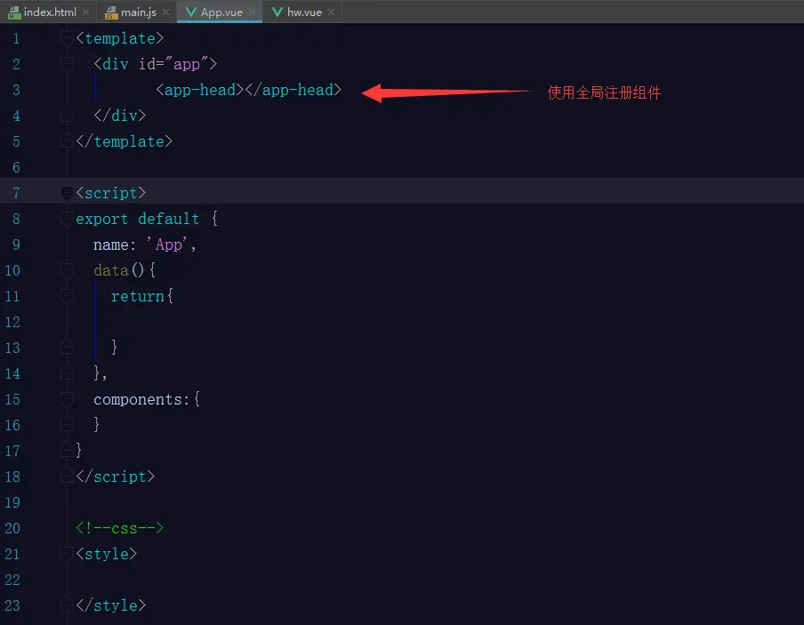 3.全局注册组件后,在 App.vue文件使用