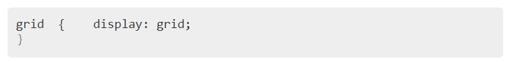将属性 display 值设为 grid 或 inline-grid 就创建了一个网格容器,所有容器直接子结点自动成为网格项目。