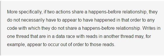 更确切的说,两个action如果有happens-before关系,对于和它们没有happens-before关系的代码来说,它们不一定按照这个顺序发生。