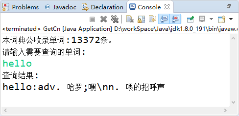 输入英文,给出对应的中文翻译,如果没有这个单词没有被收录会有相关提示