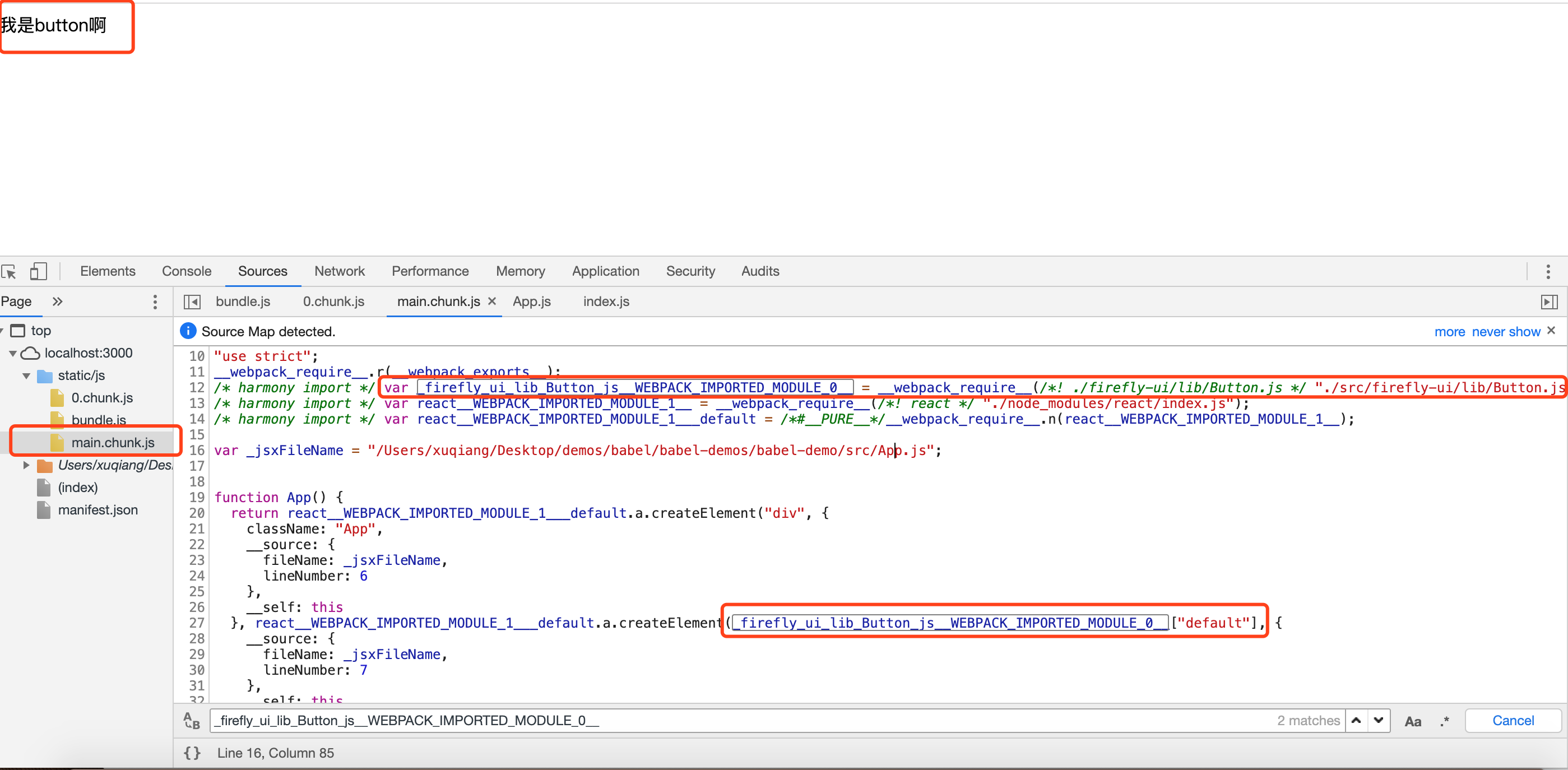 这个plugin的实现,我探索了几个小时才实现的。 如果只是实现ImportDeclaration钩子函数,而不实现Identifier钩子函数的话,可以发现import的Button已被转换,而jsx里面还是Button。所以会提示Button is not defined。如下图: