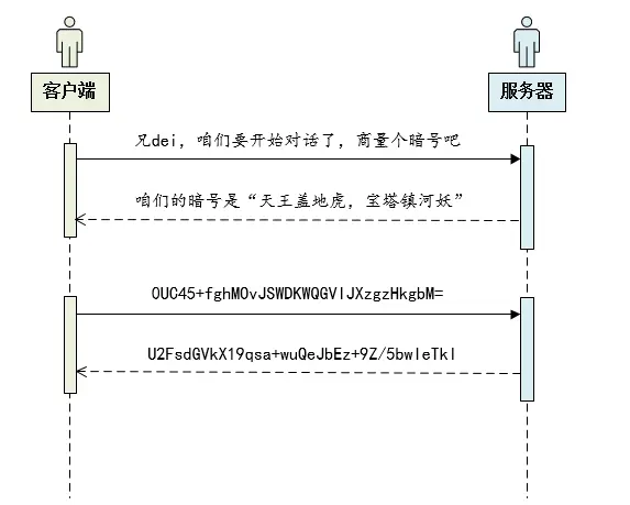 那是不是客户端与服务端在通信之前应该先协商密钥呢?客户端可以通知服务器需要开启数据传输了,然后服务器告诉客户端,咱们以后用xxxx这个密钥进行加密解密吧!