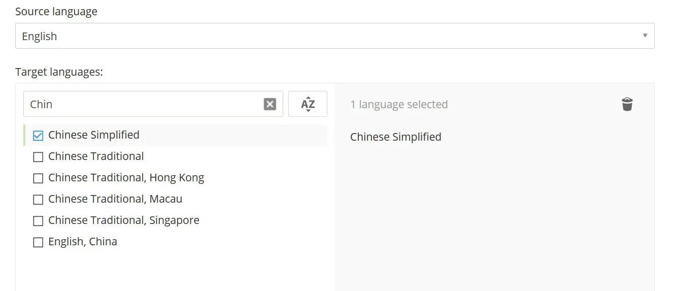 四、拉到下面选择语言,源语言Source language是英语不用管,目标语言Target language选简体中文(Simplified Chinese)。然后拉到最下面,点击Create创建项目。