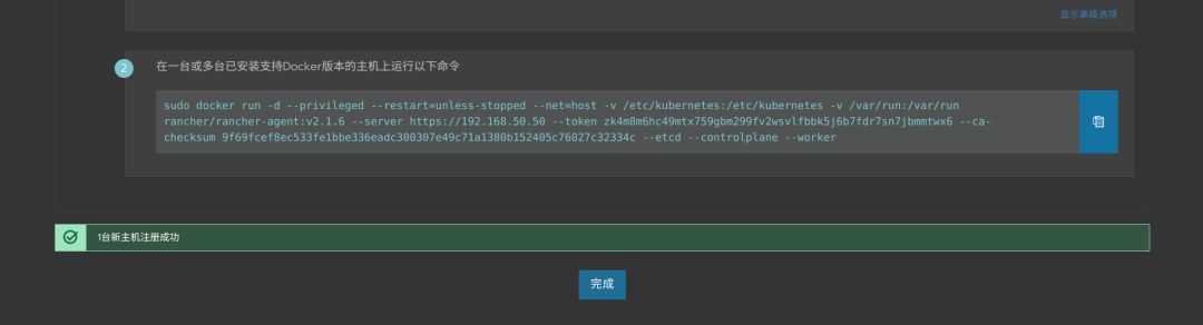 执行完成后,会显示新主机注册成功