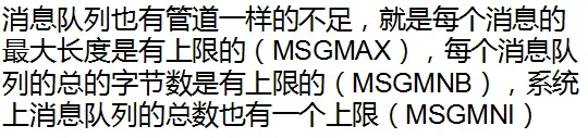 其实还可以通过管道,但是,管道是基于字节流的,所以通常会将它称为流管道,数据与数据之间是没有边界的;而消息队列是基于消息的,数据与数据之间是有边界的,这是消息队列跟管道有区别的地方,另外一个差别就是在于接收:消息队列在接收是不一定按先入先出,而管道一定是按照先入先出的原则来进行接收的。