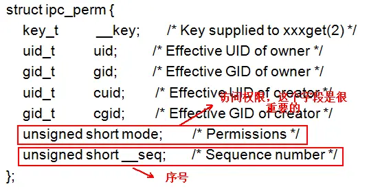这些IPC对象都是随内核持续的,也就是说当访问这些对象的最后一个进程结束时候,内核也不会自动删除这些对象,直到我们显示删除这些对象才能够从内核中删除掉,所以说内核必须为每个IPC对象维护一个数据结构,其形式如下: