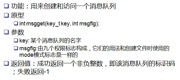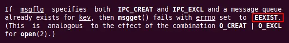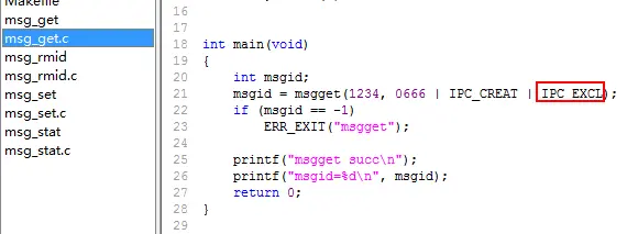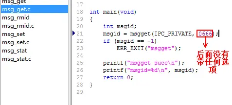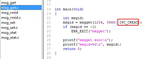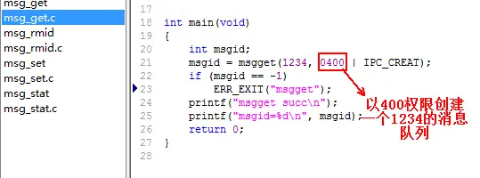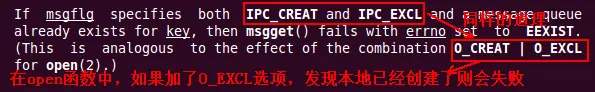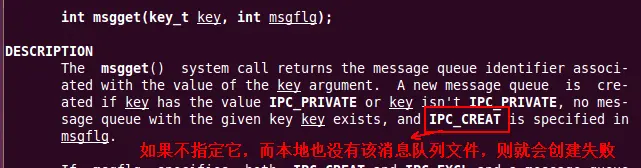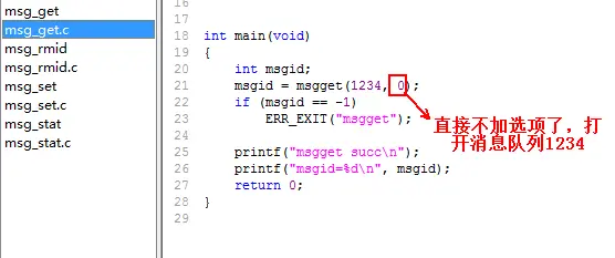 实际上msgget函数类似于open函数一样,如果在open一个文件时没有指定O_CREATE选项,则不能够创建一个文件,同样的: