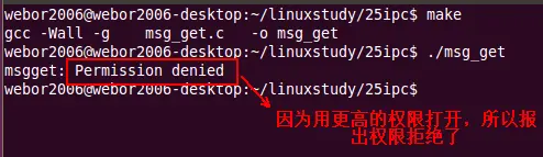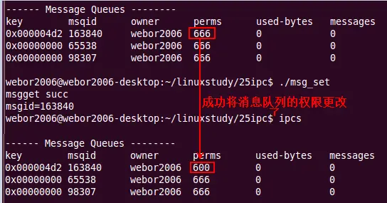 下面来以600更高的权限来打开刚才创建低权限的消息队列: