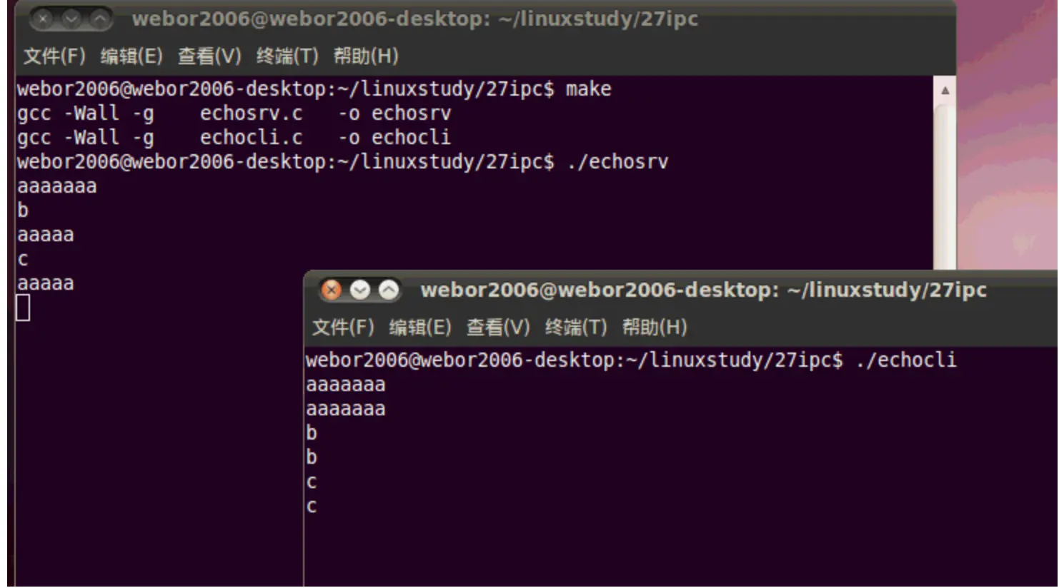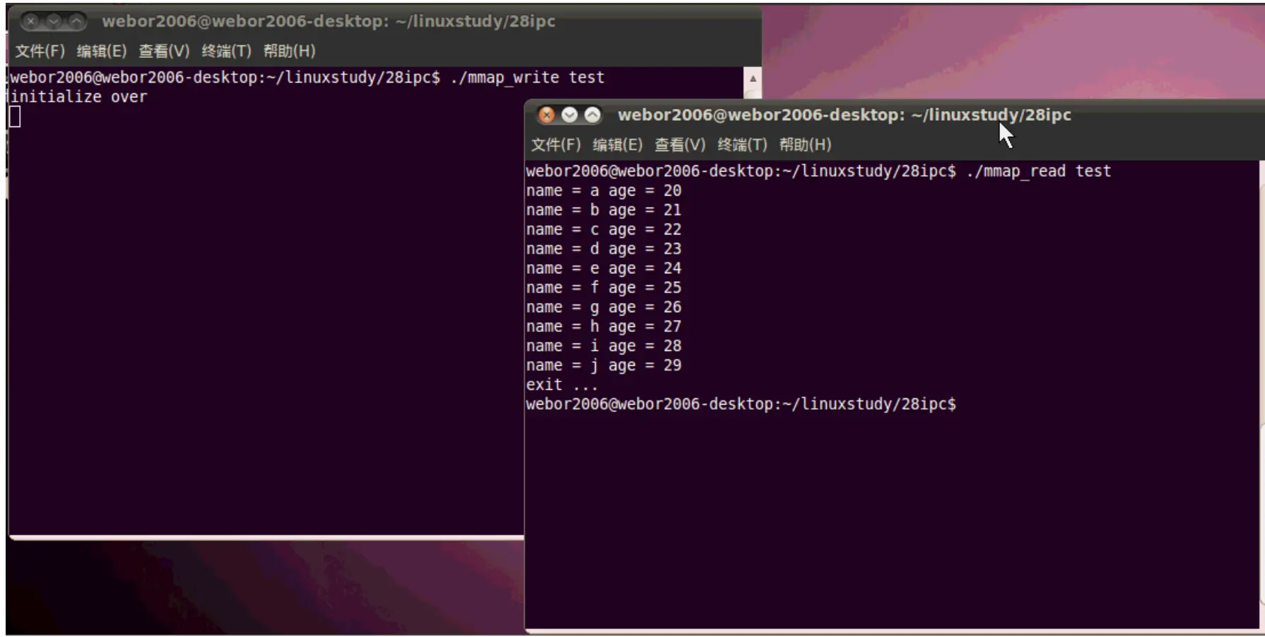 这个其实也是进程间通信的一种试,一个进程向一个文件写数据,而另外一个进程向一个文件读数据。