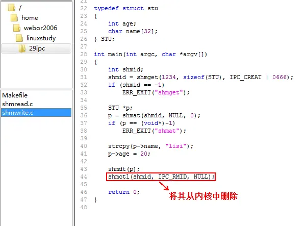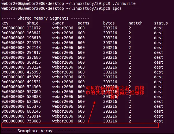 shmctl(fifo->shmid, IPC_RMID, 0);//删除整个共享内存