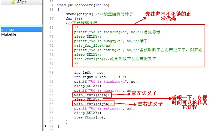 ④、给所有哲学家编号,奇数号的哲学家必须首先拿左边的筷子,偶数号的哲学家则反之