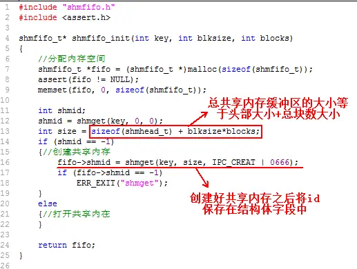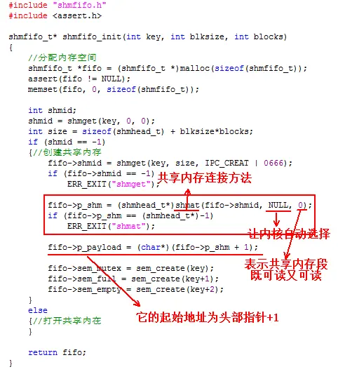 shmfifo_t* shmfifo_init(int key, int blksize, int blocks);//初始化
