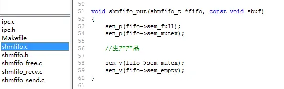 shmfifo的初始化函数就已经写完了,接下来来实现第二个函数:shmfifo_put(生产产品),对于生产者的过程,上面也说明过,则严格按照该步骤来进行实现: