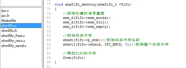 void shmfifo_destroy(shmfifo_t *fifo);//释放共享内存的环形缓冲区