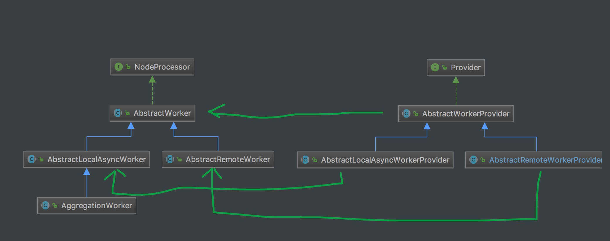 org.skywalking.apm.collector.stream.worker.base.AbstractWorkerProvider ,Worker 供应者抽象类,定义了 #workerInstance(ModuleManager) 抽象方法,用于创建 Worker 对象。