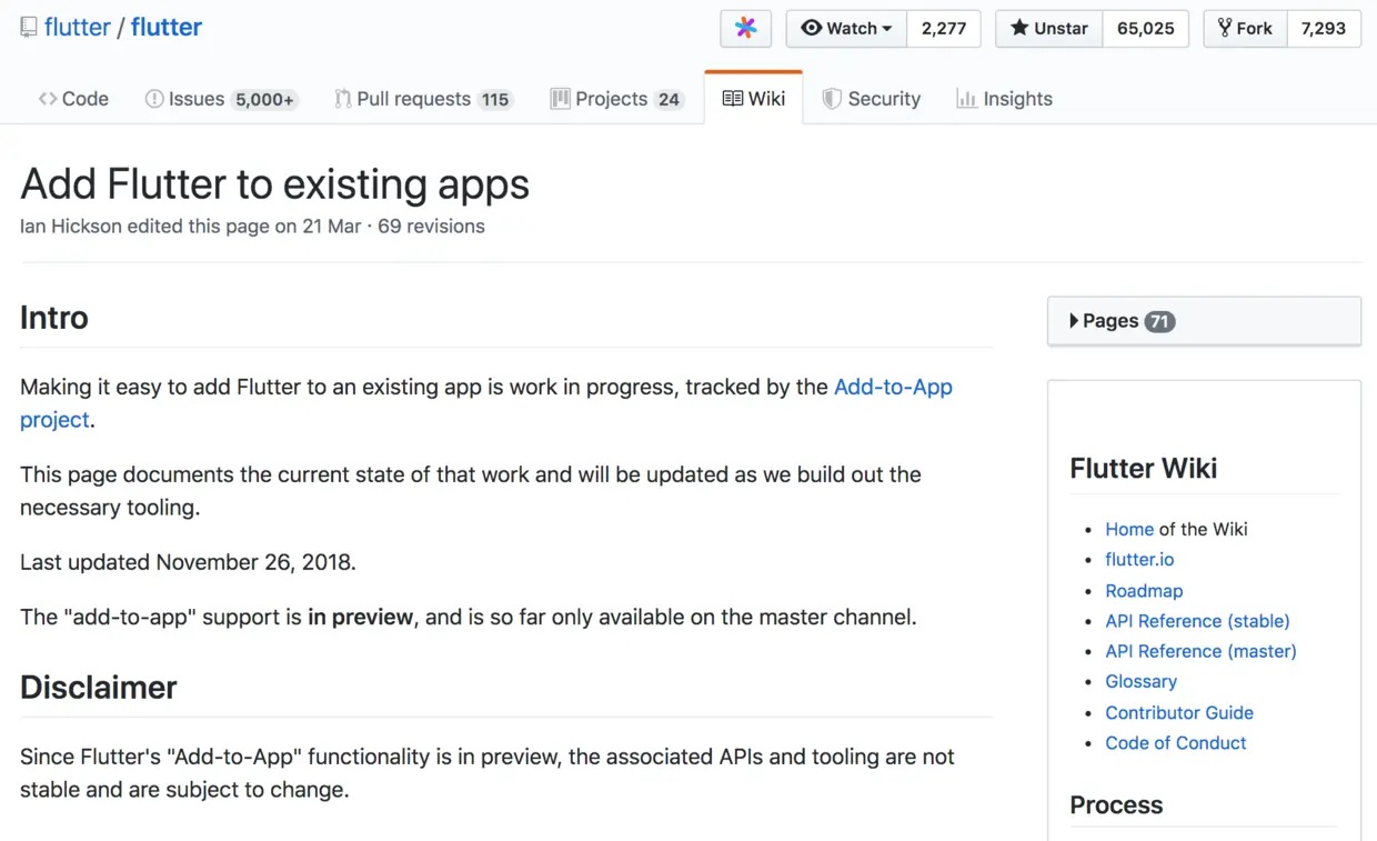 在原生项目嵌入 Flutter 的时候,参考的是 Flutter 在 GitHub 上面的 WIKI。