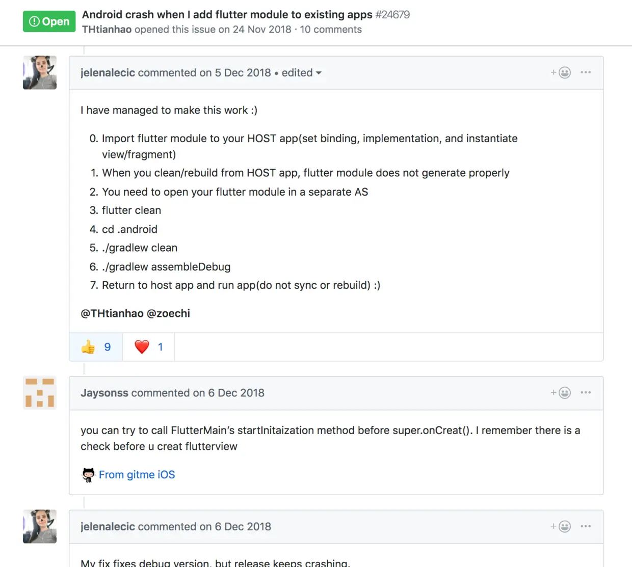 在运行出现 crash 时,解决是通过 Flutter 在 GitHub 上面的 Issues。