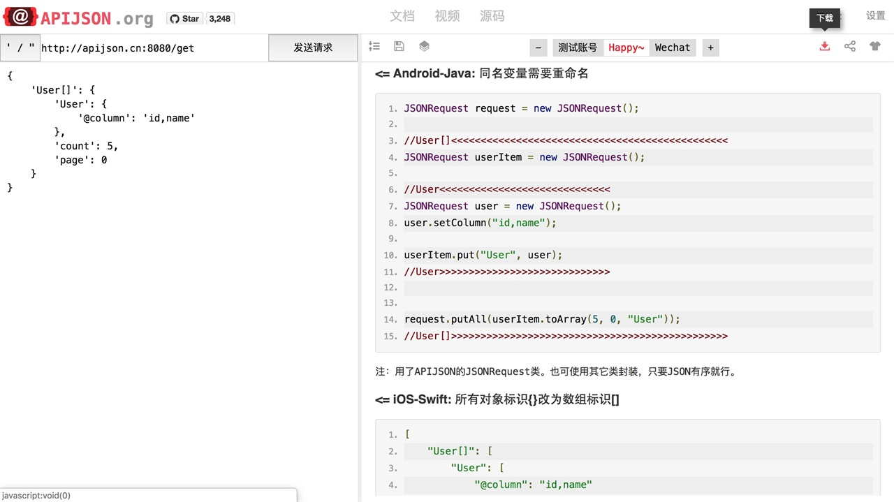 自动生成封装请求 JSON 的 Android 与 iOS 代码、一键下载自动生成的 JavaBean