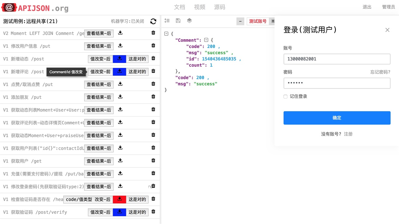 多表关联查询、结构自由组合、多个测试账号、一键共享测试用例