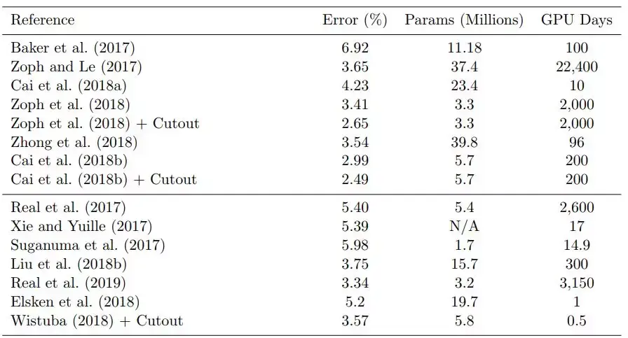 在过去的两年中,机器学习领域一直在研究自动化搜索过程。可以这么说,Zoph 和 Le 的工作(2017)是这项研究工作开始的标志,他们的工作证明强化学习算法可以发现好的架构。此后不久,Real et al.(2017)表示,研究至今的神经进化方法(Floreano et al.,2008)也可以得到类似的结果。