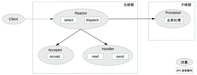 Handler 只负责响应事件,不进行业务处理;Handler 通过 read 读取到数据后,会发给 Processor 进行业务处理。