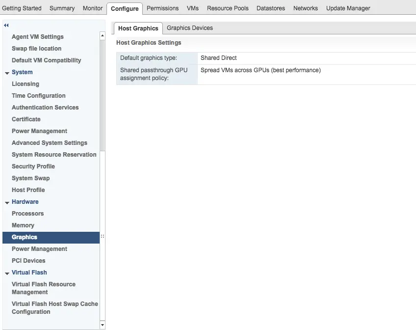 Figure 2: Edit Host Graphics screen for a Host Server in the vSphere Client
