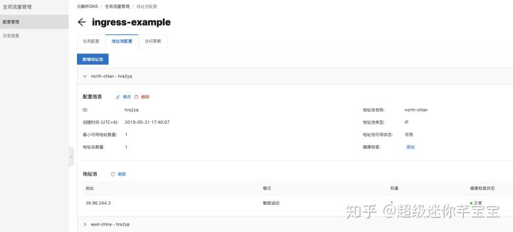 可以看到,全局流量管理可以根据用户地域解析到不通集群的LB上,当然全局流量管理还有很多其他功能,例如地址池的健康检查等,大家可以亲自测试使用。