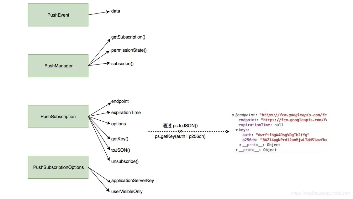 - options:PushSubscriptionOptions 类型,订阅时的 options 信息,包含:
