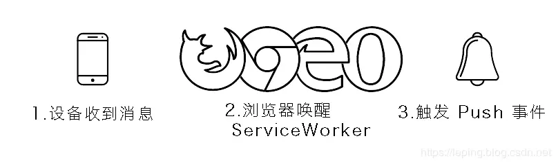 Android 系统的消息机制是系统级的,系统有单独的进程去监听推送消息,收到消息就会唤醒对应的应用程序来处理这个推送消息,无论应用是否关闭。所有应用都采用这种处理方式。所以当收到浏览器的推送消息时,会唤醒浏览器,然后浏览器再去激活相应 的 ServiceWorker 线程,然后触发推送事件。