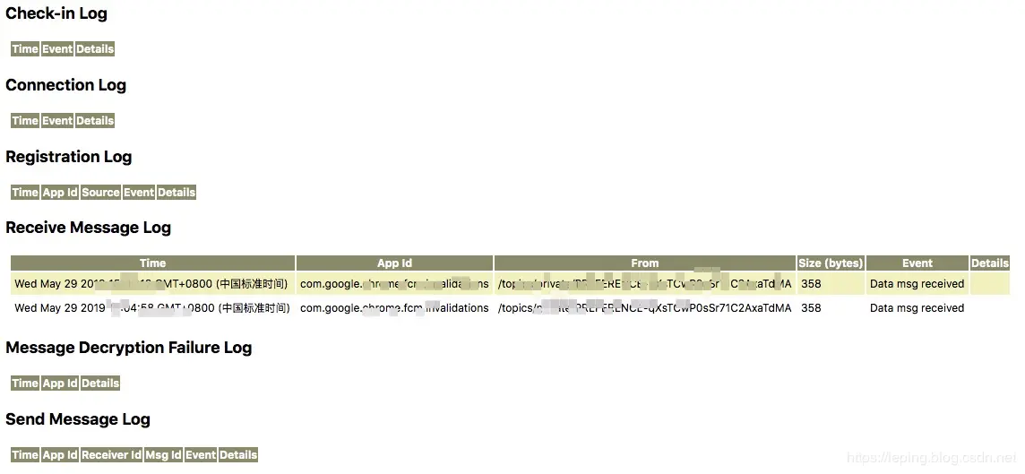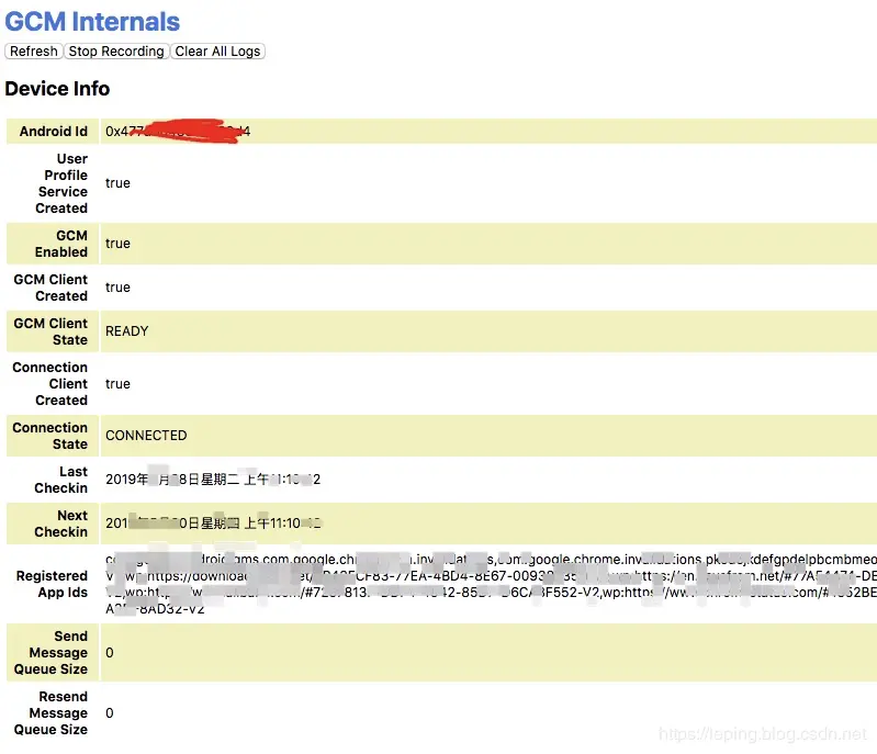 Chrome 环境下,地址栏输入chrome://gcm-internals/,并点击Start Recording按钮进行录制。