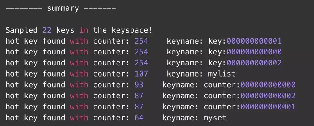 ./redis-cli --hotkeys会返回访问频率高的key,并从高到底的排序