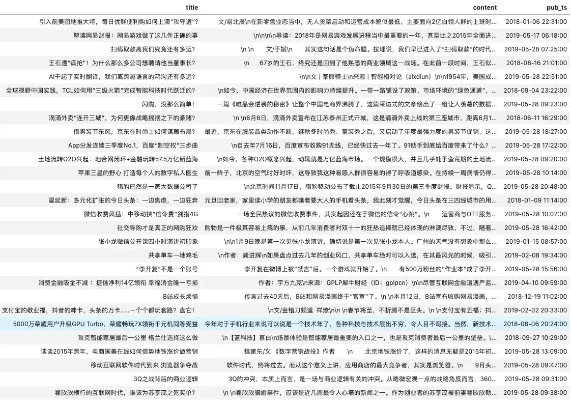| 金融讯息新闻 | title-新闻标题,content-新闻内容,pub_ts-发稿日期 |