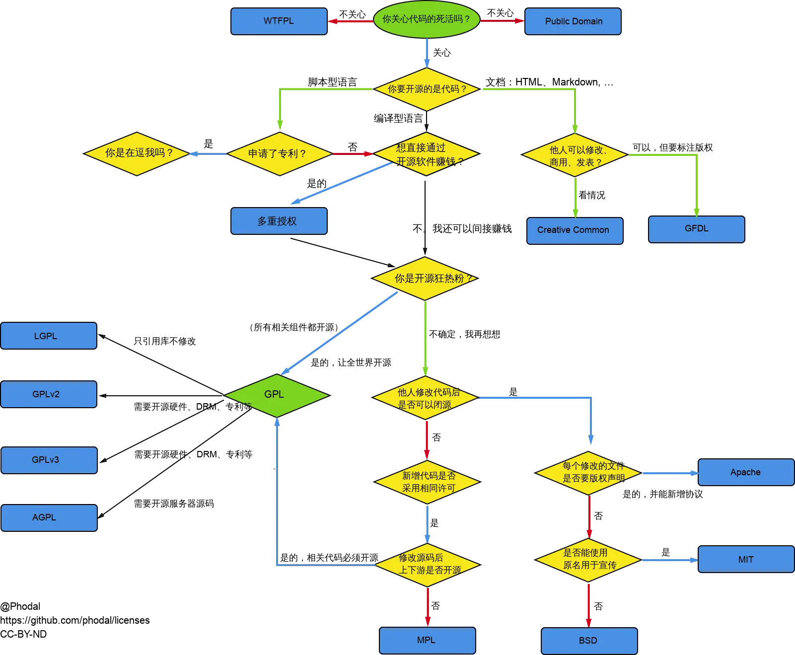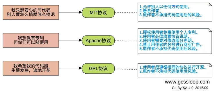 阮一峰老师在这篇文章翻译并解释了 Paul Bagwell 对这些开源协议的选择逻辑。