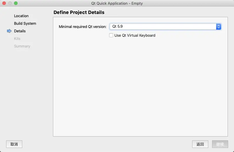 - 选择最小支持的 Qt 版本,这里默认为 Qt 5.9;