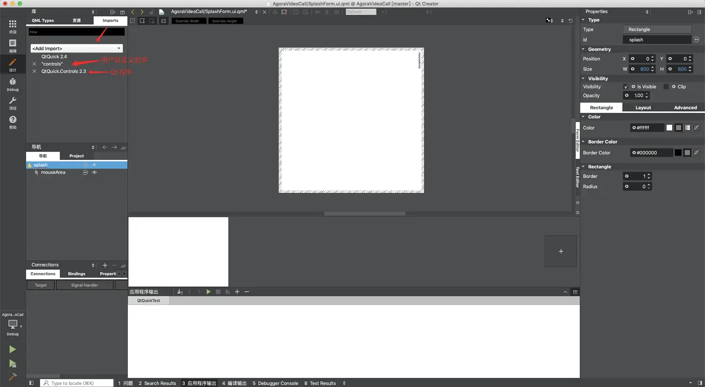 例如在 SplashForm.ui.qml 中,我们期待用户如果点击任何地方,则返回到登录界面,则在 SplashForm.ui.qml 中增加鼠标事件监听区域: