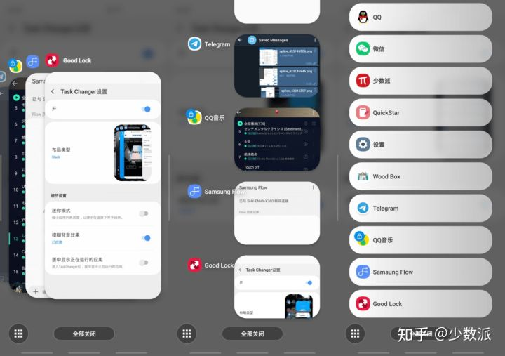 One UI 默认的多任务界面着实有些低效:硕大的屏幕上一次只展示一个 App,底部的常用应用推荐也并不怎么精准。不过,有了 Task Changer,你就可以从列表、网格、立体、堆栈等风格中选择一种多任务布局,让切换应用更高效。