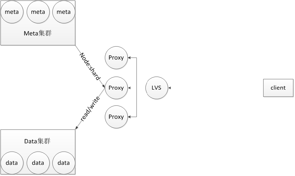 首先访问请求通过lvs锁定到某个proxy,proxy到meta集群中查找meta信息,根据请求信息,锁定database,retension policy和shard group,进而得到众多的shard。