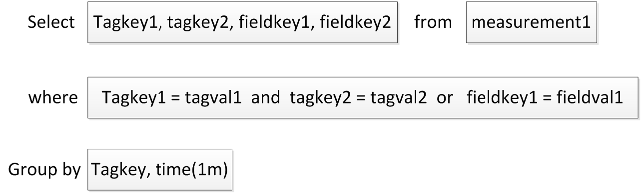 带聚合函数的查询:这种方式与上边的查询正好相反,这里是针对聚合函数参数field,拼接上众多的serieskey,当然最终目的都是一样,得到存储key,多个存储key可以读取多个数据流,这些数据流面临两种处理,先将他们按照一定的顺序汇集为一个数据流,然后按照一定的策略圈定这个数据流内相邻的一些数据进行聚合计算,进而得到最终聚合后的值。这里的顺序和策略来自于sql语句中group by后的聚合方式。