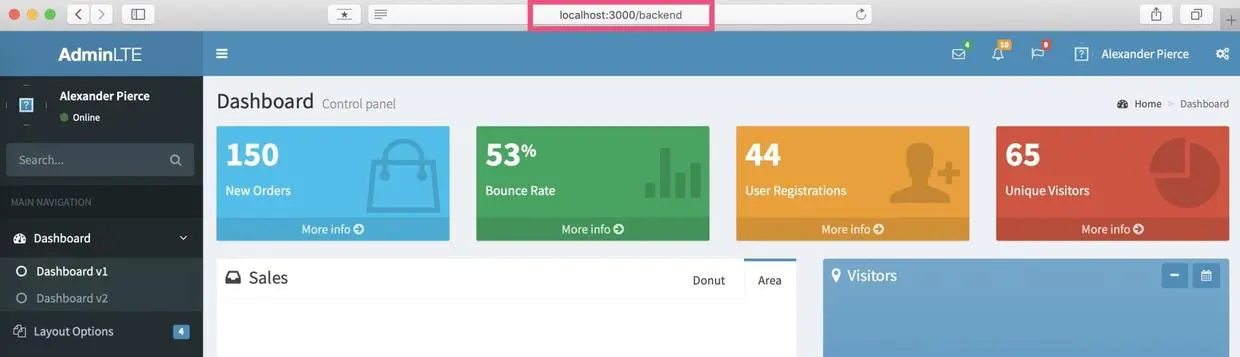 建议的做法是,快速套用一个前端模版库,将大体的页面结构搭建出来,然后在上面添加业务功能。 这里采用 AdminLTE 这套模版库,大概效果图如下: