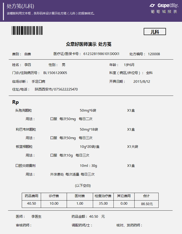 处方笺儿科