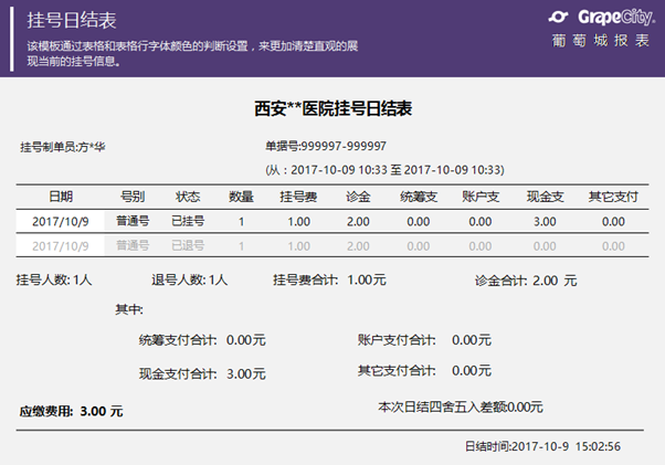 挂号日结表