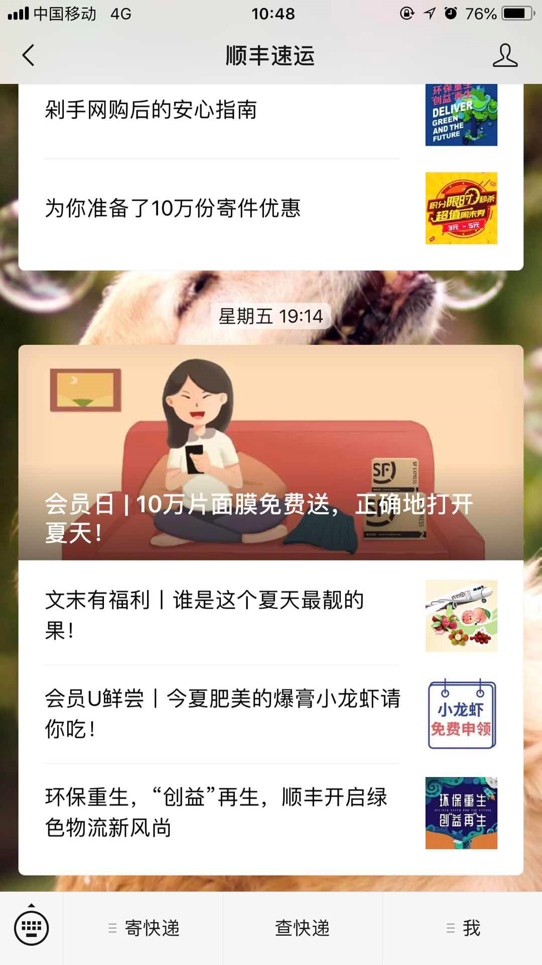 顺丰公众号的侧重点是在与快递功能,快递消息的推送是辅助功能