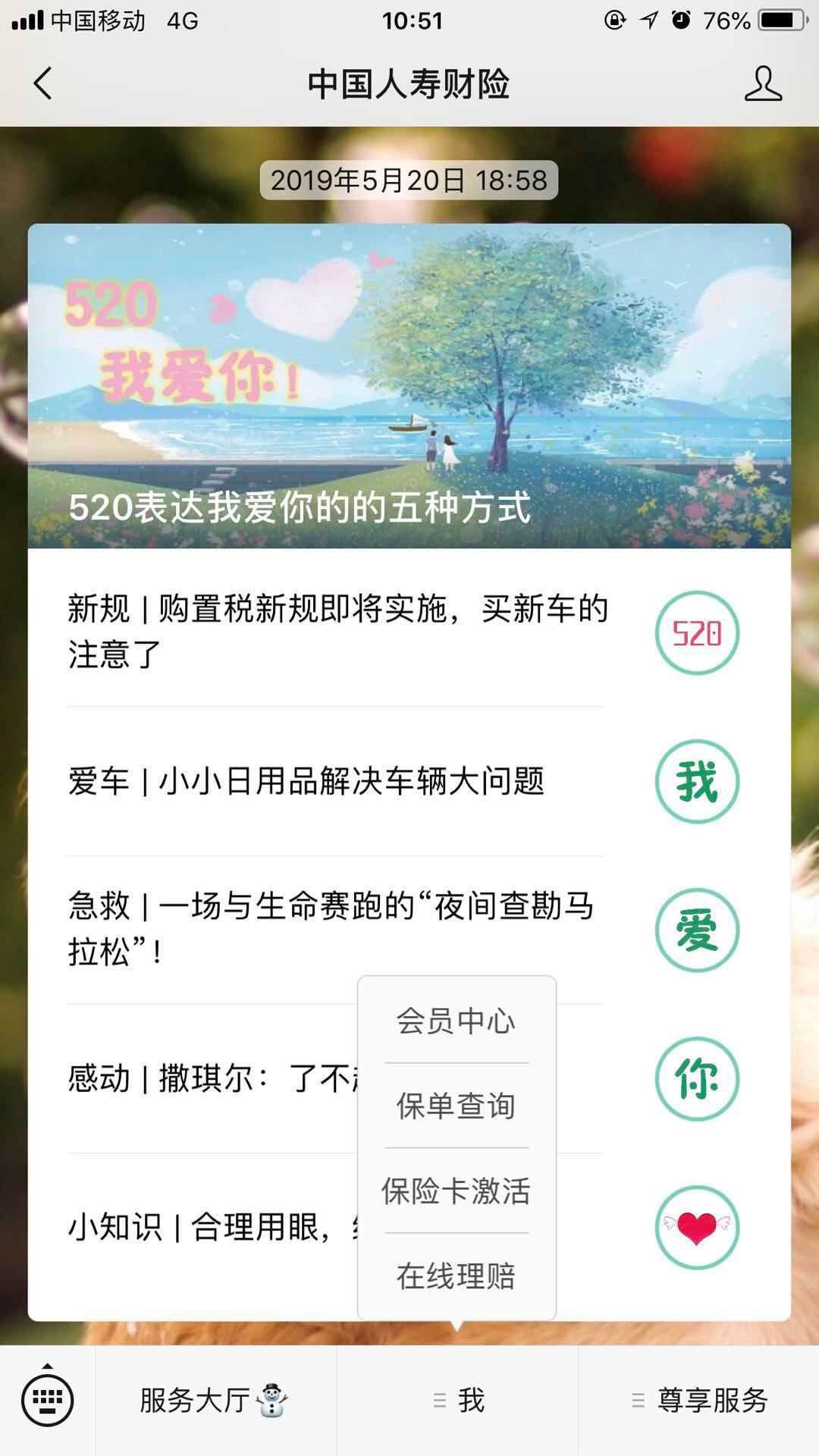 中国人寿财险是中国人寿下的一个微信服务平台,主要提供一些保险的咨询、保单进度查询、车险相关信息的咨询与产薰、以及续保消息的推送等