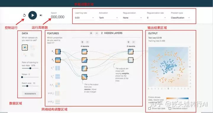 TensorFlow游乐场是一个通过网页浏览器就可以训练简单神经网络 并实现了可视化训练过程的工具。