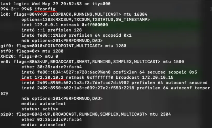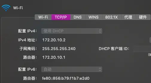 1)连接后,首先找到分配给电脑的IP。mac获取IP在设置->网络,里面就可以看到。