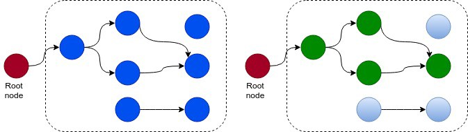 我们通常会使用这种简单有效的算法来判定可以从内存堆中安全清除的对象。算法的工作方式正如其名:将对象标记为可获得/不可获得,并将不可获得的对象清除。 垃圾回收器周期性地从根部或者全局对象开始,移向被它们引用的对象,接着再移向被这些对象引用的对象,以此类推。所有不可获得的对象会在之后被清除。