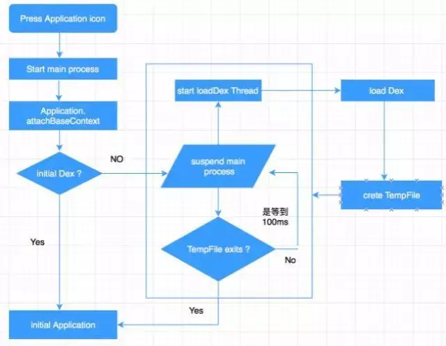关于问题2,在挂起主进程的同时,去启动一个工作线程去加载dex,也就是这个线程是非UI主线程,不会造成阻塞UI主线程的情况,经过多次测试,也确实没发生ANR现象,这个通过分析ANR现象的本质就能得出这个结论。