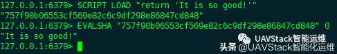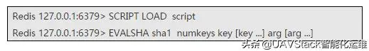 Redis提供了一个SCRIPTLOAD命令,命令后面的script即为Lua脚本。命令将脚本script添加到脚本缓存中,但并不立即执行这个脚本。执行命令后,Redis会返回一个SHA1串,第二个EVALSHA命令即可执行。