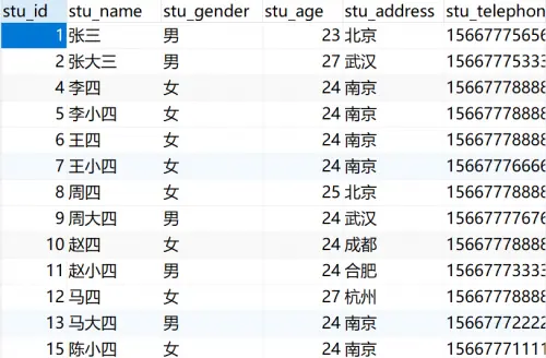 select stu_id 编号,stu_name 姓名,stu_age 年龄 from tb_student;