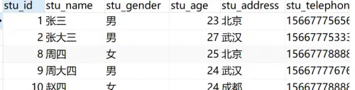 select * from tb_student where stu_address in ('北京','武汉','成都');